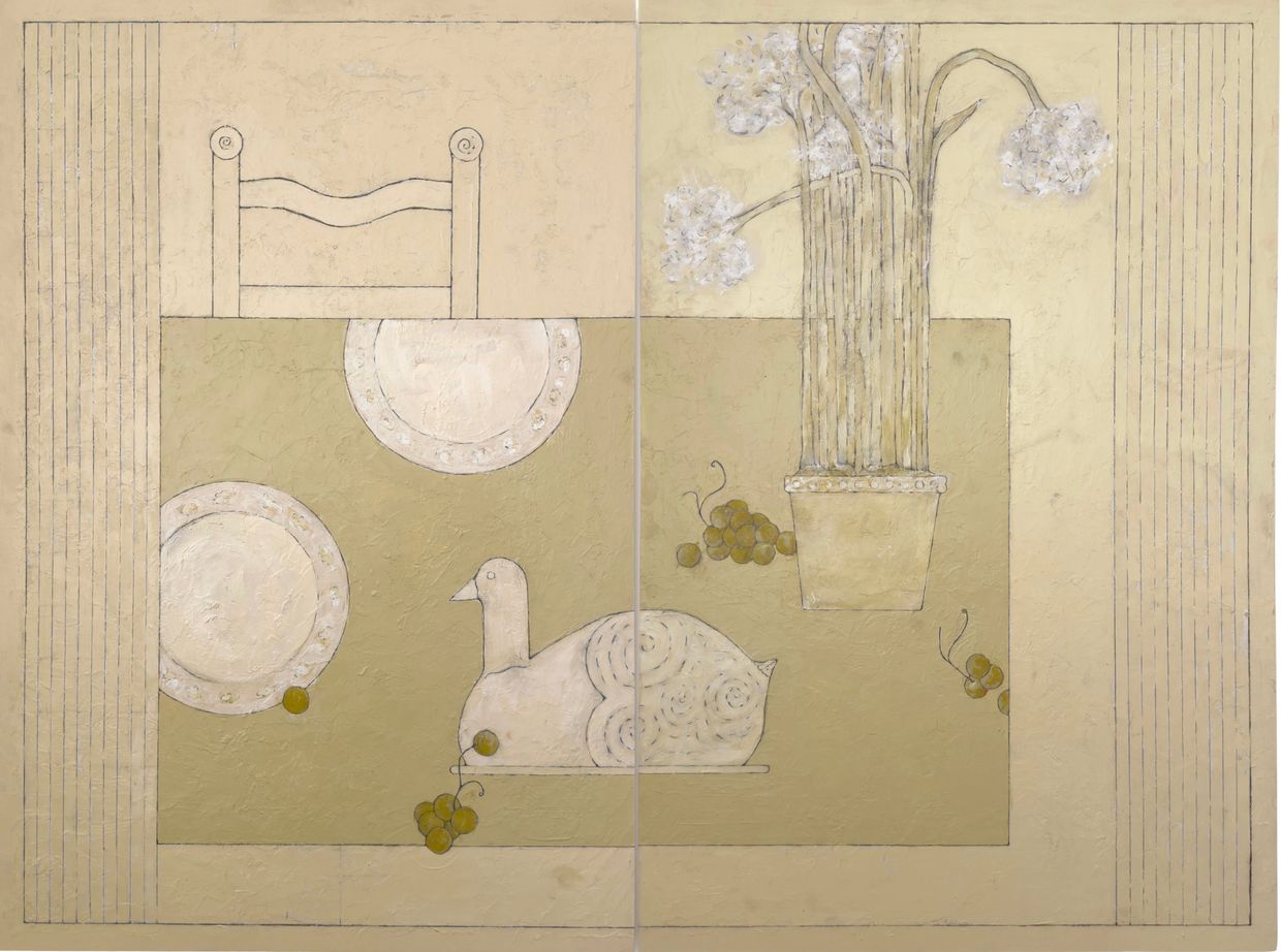 gouache and molding paste on wood panel canvas